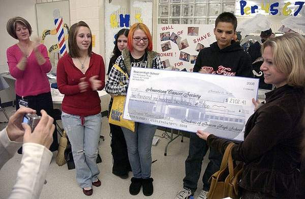 This is how much money the students at Beacon High raised in the month of November. This means that some of the male teachers are getting shaved. Yep, they promised. And one security guy said he would shave his head. Tomorrow they are having a ceremony where the check for $2,102.41 is going to be presented (I got the amount off the picture) and the press is going to be there and a bunch of important people. Tigger is one of the students that has been chosen to speak to the press. So Em took him shopping so he will look really good.