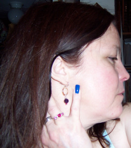However I promised to write more about Manhattan. First, I had the address of the salon wrong, not the address the cross street. As we stood there and looked at the street sign, Em said, I have West down and this is East, that means the salon is on the other side of Central Park. So we had to walk across Central Park and the up Columbus, because you can’t go straight across the park. We had to stop for lunch then. Em was good and had a salad but I was bad and had a burger, but it was good. On to the salon. Em wanted a spa pedicure and when they asked her which kind she was confused, they had 4 different ‘flavors(?)’ of salts, I guess you would call them. I had a regular pedicure but it included getting my legs exfoliated with some citrus smelling stuff. I also got a leg massage, which I told you about. My calves were still sore this morning! Since I have gel nails, I needed a fill so I had to wait to get my nails done. The lady that did my pedicure gave this little girl a manicure, green polish on one hand and sparkly red on the other. Her mother said, “Now when you get your nails done, you can’t bite them.” In a very soft voice the little girl said, “I won’t mom.” Kind of a sighing voice, like, “Mom, you’ve already told me a hundred times.” Of course Em and I think, since she is a former nail biter and I am a friend of a former nail biter, that its not going to work. But the nails looked very pretty. As do mine now, however if I keep talking about manicures and posting pictures of my nails, I am going to have to change the name of my blog to either Fashionista Bella or Nail Diva Bella, and those are the earrings I bought to replace the earrings I lost, and no I didn’t find them, but I did find my hockey puck.