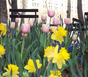 Em and I did our usual, have lunch, get our nails done, do some shopping. I had them trim my nails, I was having trouble getting my contacts out of the case, she was done before me so she walked up to Central Park. When I was done, I was making my way toward her, trying to get there, text her and take pictures in Bryant Park all at the same time. We ended up meeting at Rockefeller Center. Then headed back to Annie Moores. Stopped at a street vendor where I bought a purse colorful for spring, summer and fall.
