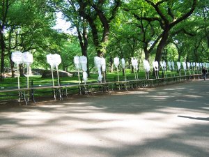 We left the museum and headed to the West side so we could go to the crocs store. We had seen these tables set up before and decided they must be for a charity walk of some sort. We were right, there was an Aids Walk on Sunday between 8:30 and 10:00 am. We walked past the American Museum of Natural History located at 79th Street and Central Park West. We didn’t go in, not on my list of museums I want to see, but I took pictures of the outside, and a statue of Theodore Roosevelt. I also took pictures of lots of flowers in Central Park, Ballfields, Statues and the reservoir, where some of the scenes from Marathon Man were filmed. They are all in the side show. I took out the other pictures so the only pictures there are from Saturday. I also sniffled my way across the park. Stuff is blooming! Next time I will have to remember my Flonase.