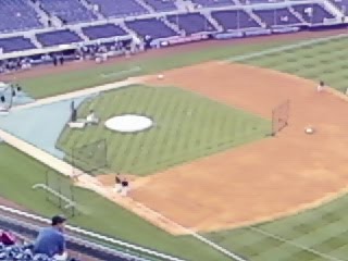Yesterday we(by me I mean Em, D, Fred and I) went to the Yankees vs. Blue Jays game. D and Fred sat together, Em and I sat together (we got the tickets separately so we weren’t all sitting together, plus D had a problem with the tickets he bought) I took this photo with my phone, I don’t know why, since I had my camera with me(No matter, now I have a new wallpaper for my phone). The Yankees scored early, then the Jays got one ahead. Then nothing till the 8th inning. Em and I both thought Joba Chamberlain was not all we had heard him to be and were less then impressed with Hideki Matsui, so much so that when he came up to bat I went on Facebook and was about to type, ‘I am less then impressed with Hideki Matsui’ when the crowd makes the sound it makes when something is happening and I looked up to see the ball making a perfect arc into the stands. I almost dropped my phone, the guy across the aisle was high-fiving people and I think he injured my wrist. Then Jorge Posada was up, and he hit a home run too! Then they said the play was under review. The crowd booed. The umps decided it was a home run after all. Then the Yankees scored another run. It was Yankees 7, Blue Jays 5, the Yankees sent in Mariano Rivera and they won the ball game. It was also announced that it was Melky Cabrera 25th birthday. So our men (Derek and Mark) didn’t hit any home runs, but Derek scored the first run of the game and they got a lot of Blue Jays out. Since Joba wasn’t striking them out.