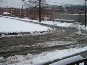 >I came home from work early yesterday. Em called and said it was sleeting at home, so even though it was just rain in NYC, I came home. It was kind of nasty, not so nasty that I couldn’t take Gwen up to the DCC South Campus to pick something up for the disabilities office. Not that it did any good, since when she and Stitch left this morning, they couldn’t get out of the development. The problem with living in a private development is one has to wait for the landlord (or his maintenance guy, who he doesn’t pay just gives him a place to live) to come clear the roads; on the plus side, he plows out the driveway so we don’t have to.