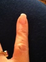After pulling on my rainboots and coat I ran out to start my car, then I hurried back in down the 3 cement steps to my basement/apartment door, and slipped on the ice, hitting the brick wall on my way down. I bruised my butt, banged up my shoulder and broke my pinkie nail. I proceeded to get up and walk in the basement and cry to Gwen, “I fell!” However, since I could walk, I of course washed my hands, changed my pants and proceeded to do my errands.