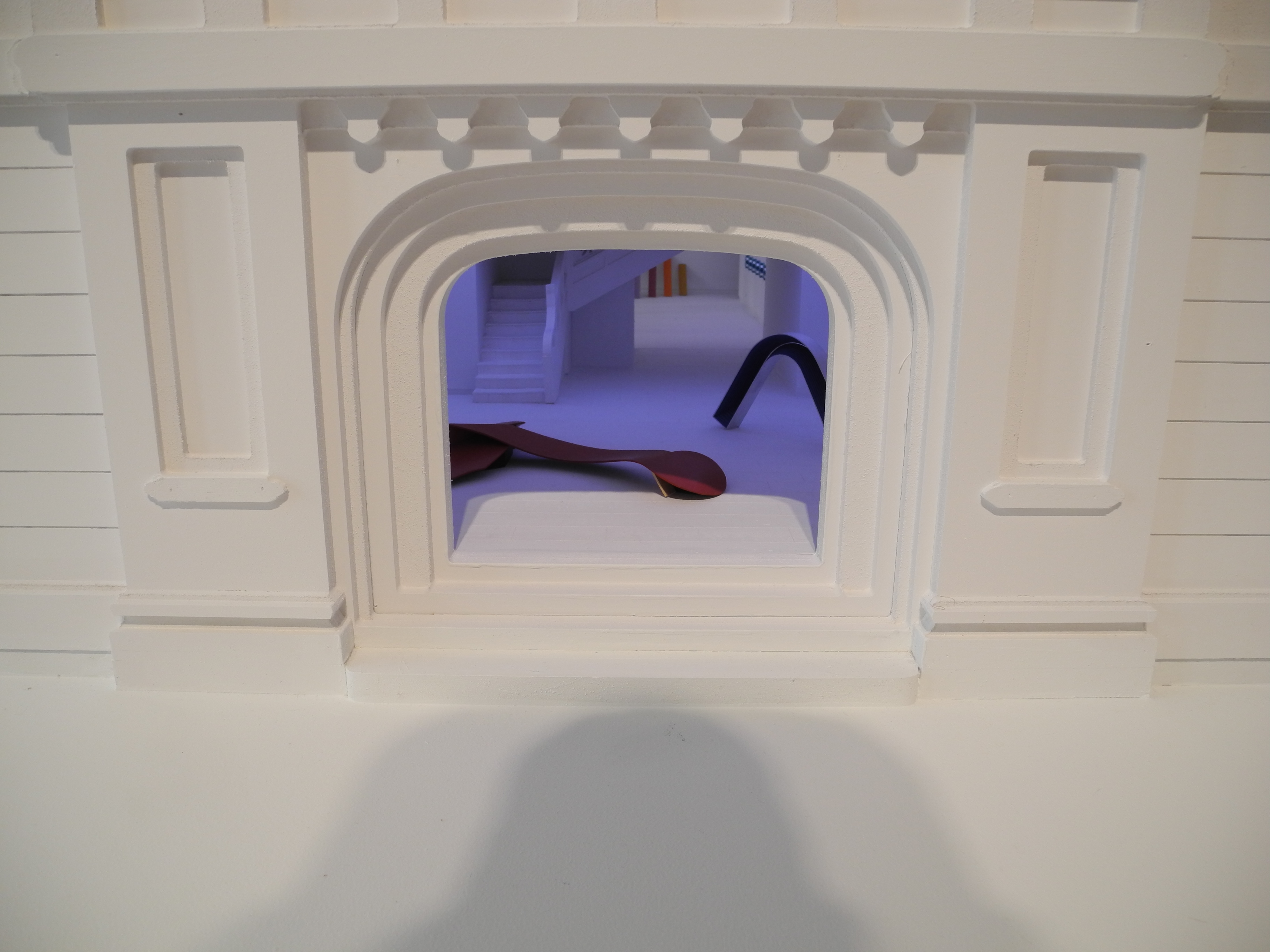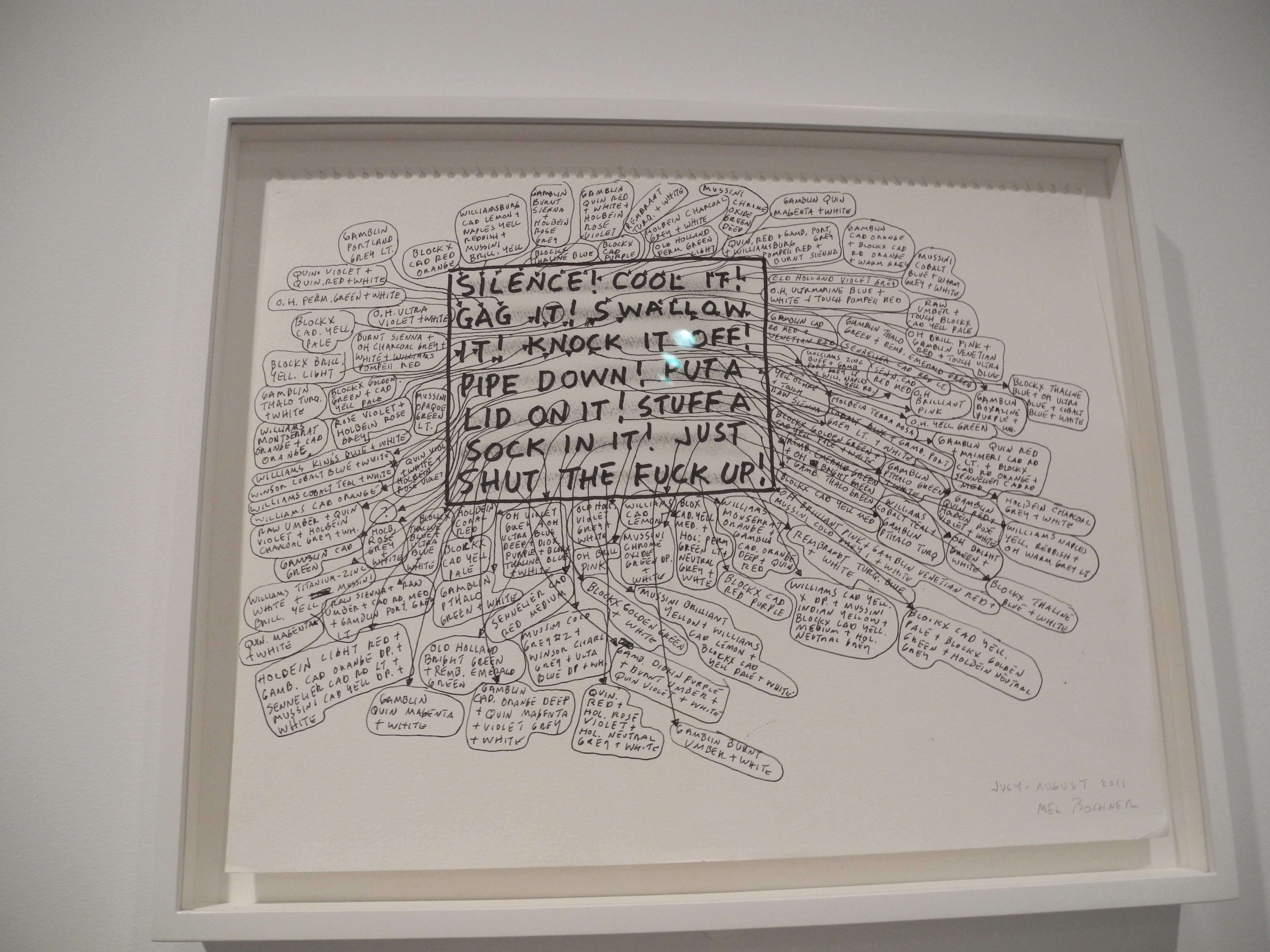 Beautiful designs, trees with red branches against a blue sky, little yellow tea cups spewing white steam, and in the steam quotes. Big yellow tea cups from floor to ceiling and shoes. Red, blue and green pumps with bows tied with yellow ribbons, and the ends of the ribbons are loose and floating, creating more intricate designs as they float around the walls. Whoever was commissioned to design this has an obsession with pumps. I realized I had to photograph this, the pictures are below. As always, click on them to see them full size.