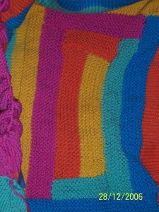 Well, I took a picture of the blanket I knitted, it is in the camera, I wrapped the blanket in pink tissue paper then white paper with a bunch of cute saying on it, and stuck it in a gift bag, the bag is kind of yellow. Too much pink gives me a rash. I can’t decide if I am going to get a card. I know I should, I am just getting a little short on cash right now.