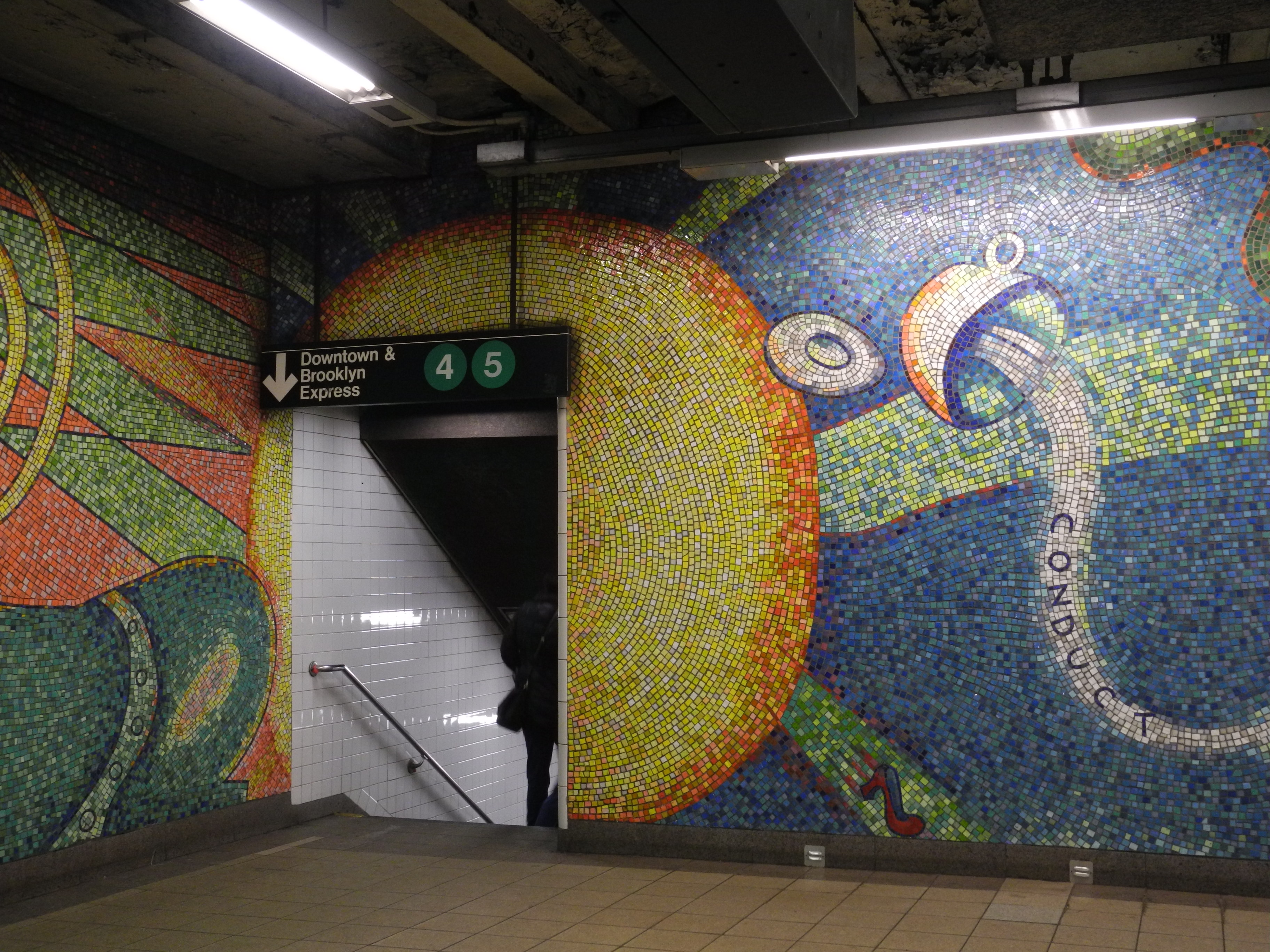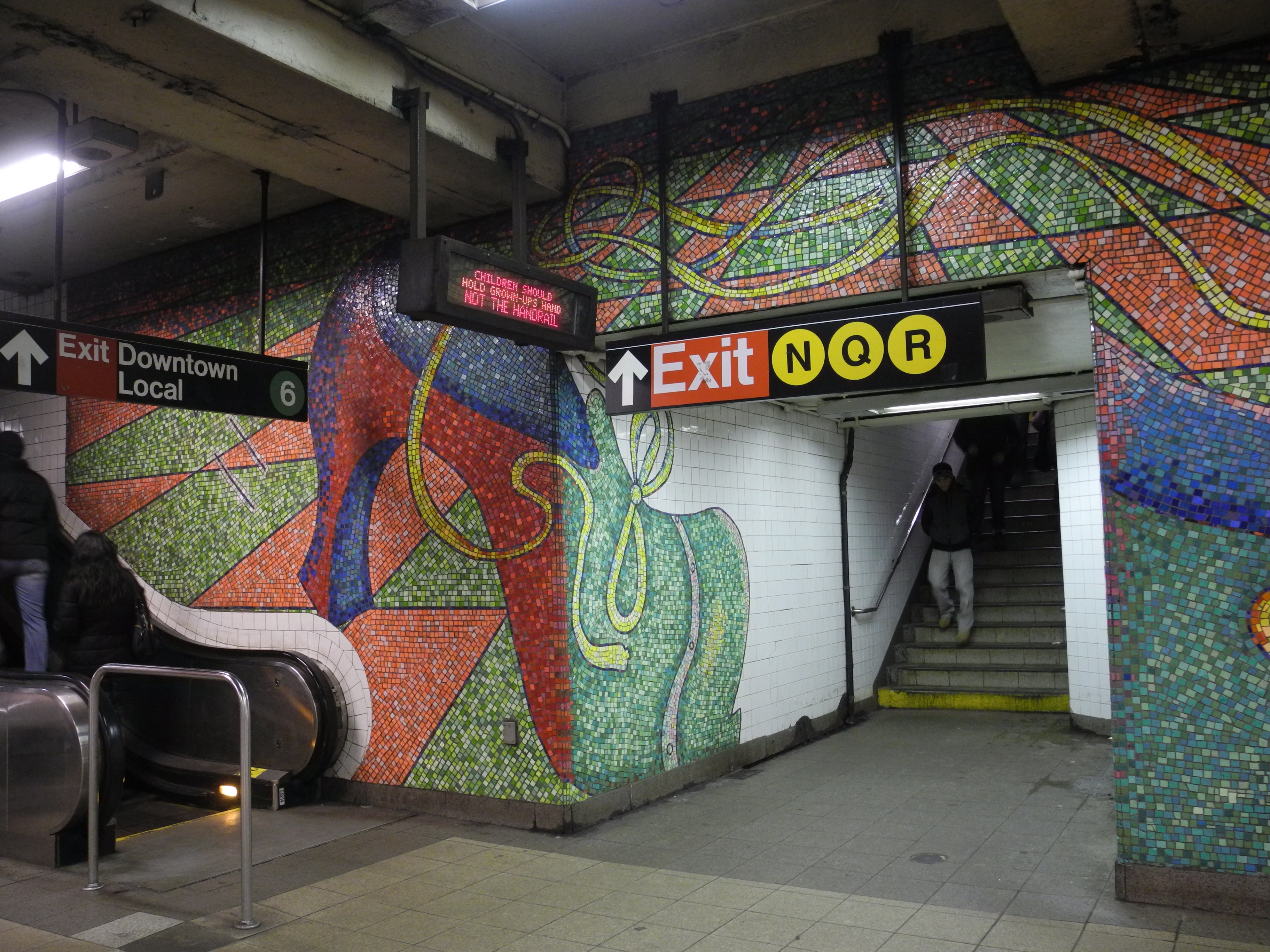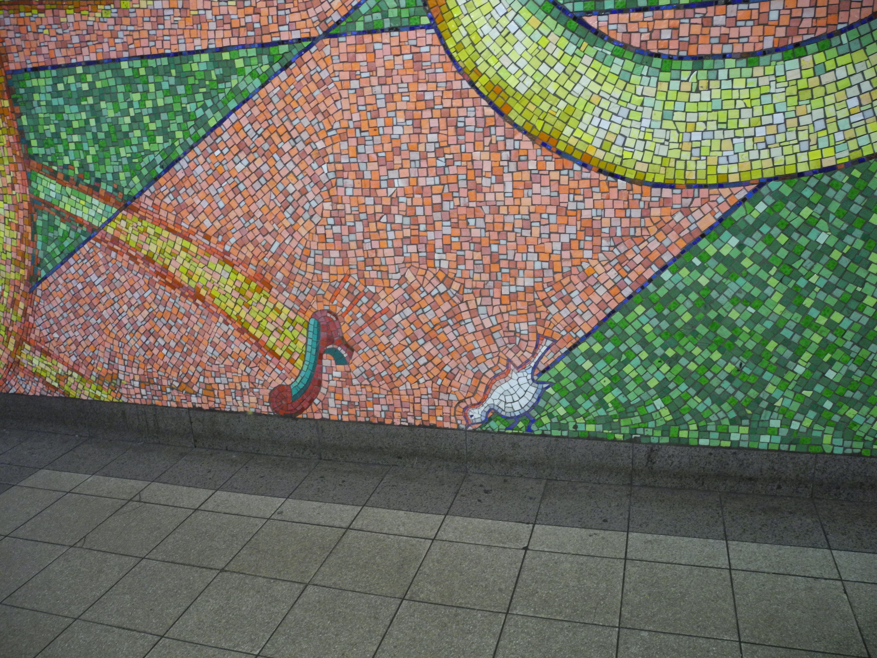 0421 Subway NQR 0211The first time I changed at 59th Street, I walked up to stairs and saw this. The whole, I guess you would call it a lobby area, is wall murals, done entirely in tile.